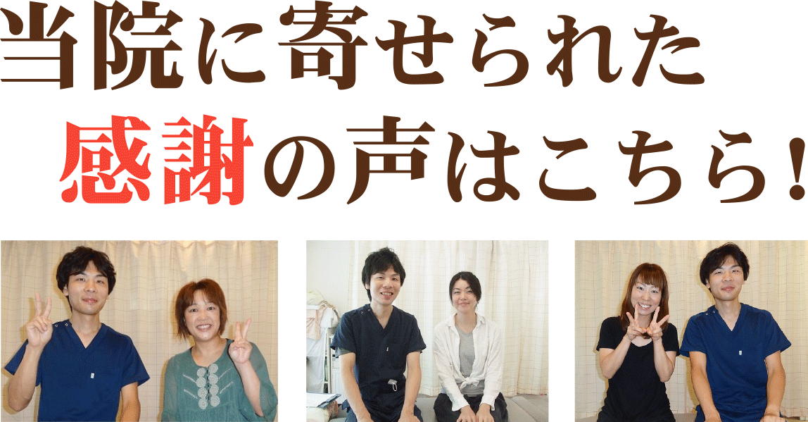 当院ではまず筋膜調整で今の痛みを改善し、次に骨格矯正を行うから根本的に改善して戻りません。