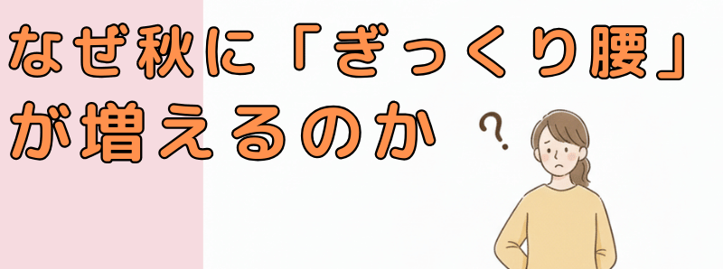 夏の厳しい暑さが和らぎ、過ごしやすい秋がやってきました。しかし、この季節の変わり目は、急な「ぎっくり腰」に悩まされる方が非常に多くなる時期でもあります。